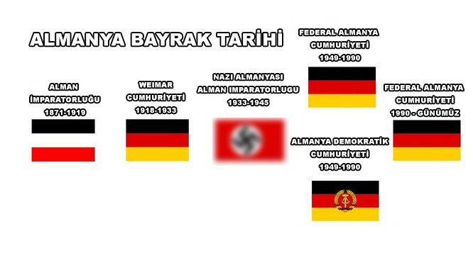 Naziler 1930’larda Almanya’da iktidarı ele geçirdiğinde, resmen tanınan iki ulusal bayrak vardı. İlki siyah, beyaz ve kırmızı şeritlerden oluşan bir bayraktı. İkincisi bir gamalı haç sembolüne sahipti. Dünya Savaşı’ndan sonra yeni bir bayrak tasarlandı. C-Flama kırmızı, beyaz ve mavi renklerde tasarlanmıştır. Almanya 1940’ların sonlarında bölündüğünde, kullanıma sunulan birkaç farklı bayrak vardı. 1989’da Berlin Duvarı’nın yıkılmasıyla, siyah, kırmızı ve altın bayrağın 1990’da yeniden birleşmiş bir ülkenin bayrağı haline gelmesi ve günümüzdeki mevcut bayrağa dönüştürülmesiydi.