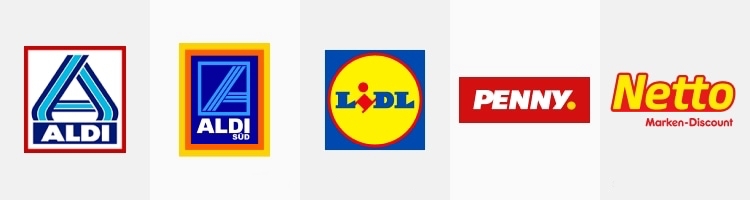 Bu süpermarket zincirlerinin her birinin kendi indirimli süpermarket markası da vardır. Örneğin, Netto Edeka’nın, Penny REWE’nin indirimli süpermarketidir.